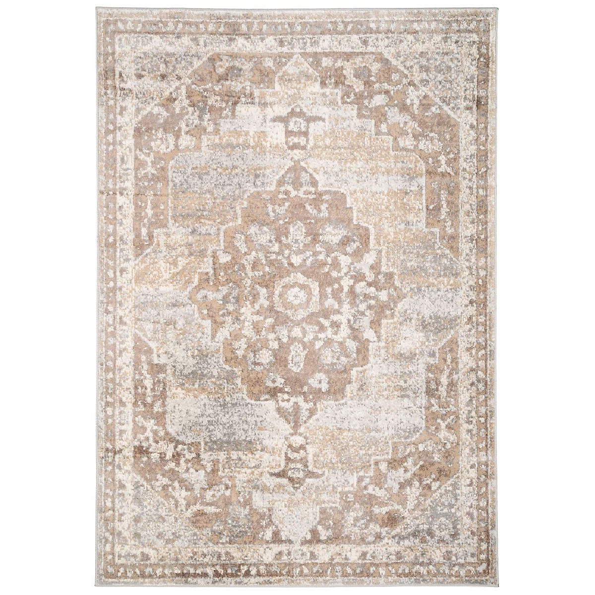 Neutral Beige Traditional Medallion Area Rug 200x290cm