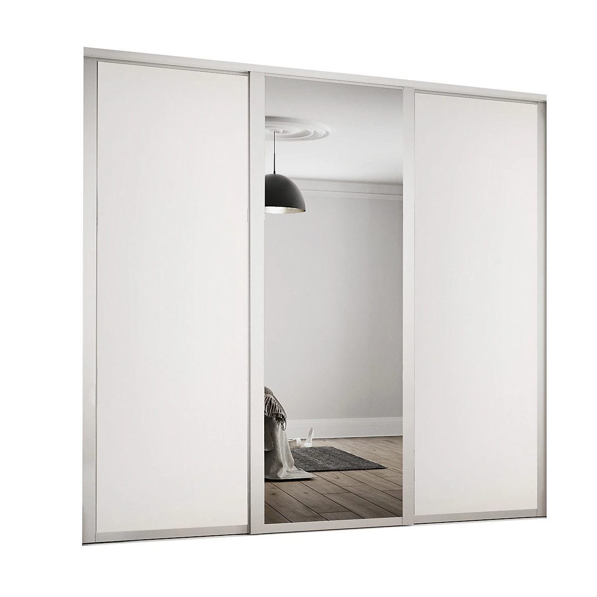 Panel Shaker With 1 mirror door White 3 door Sliding Wardrobe Door kit (H)2260mm (W)2136mm