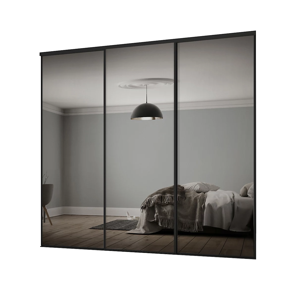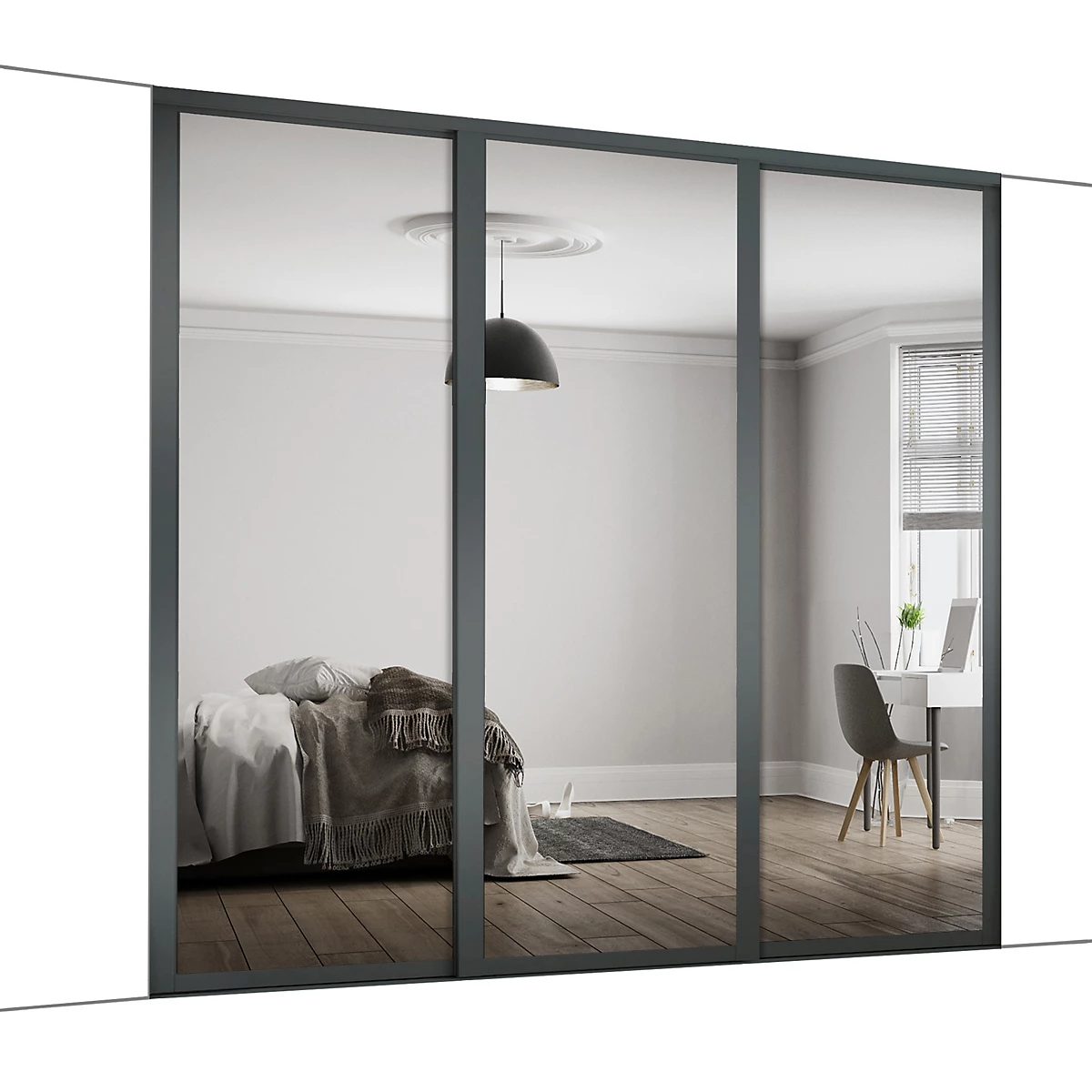 Shaker Mirrored Graphite 3 door Sliding Wardrobe Door kit (H)2260mm (W)2592mm