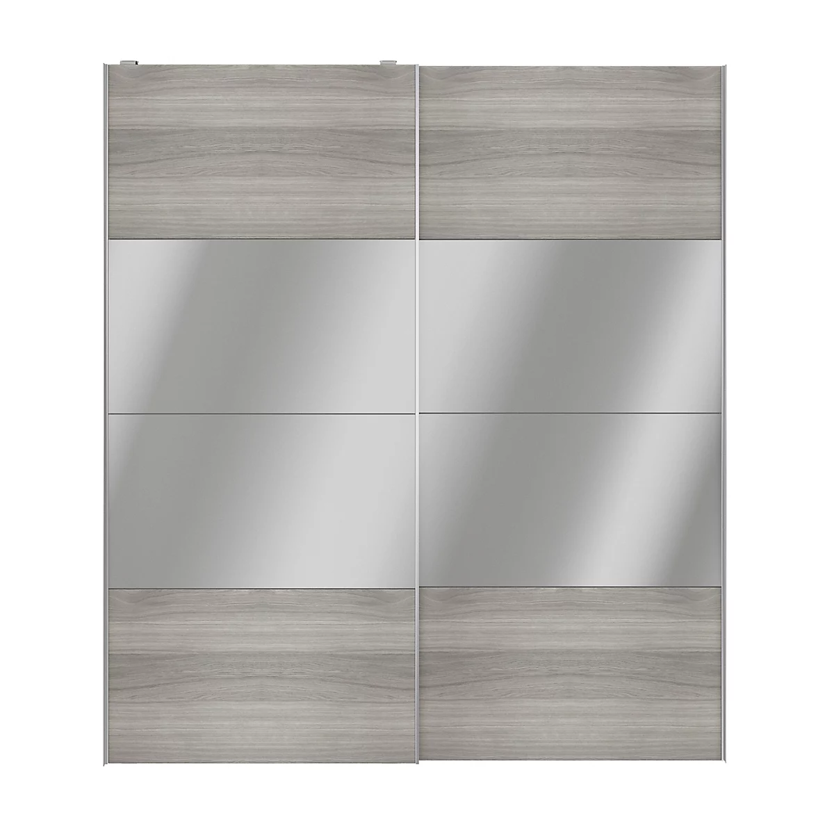 Atomia Panelled Mirrored Grey oak effect 2 door Sliding Wardrobe Door kit (H)2250mm (W)2000mm